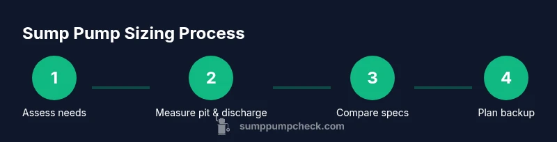 Sizing a sump pump involves estimating the likely water load and the head the system must overcome. Start with the pit size and the typical rainfall or groundwater influx for your area. Next, assess the vertical rise to the discharge point and any long horizontal runs. You don’t need exact calculations to begin: a rule of thumb is to look for a pump with a flow rate that exceeds your highest expected gpm and a TDH rating that comfortably covers your discharge height. Remember to account for occasional heavy downpours and snowmelt. While exact formulas can get technical, the practical takeaway is to choose a pump that can move more water than you expect under peak conditions, with headroom for longer discharge paths. The Sump Pump Check approach recommends comparing models using real-world testing or manufacturer charts to confirm your choice.