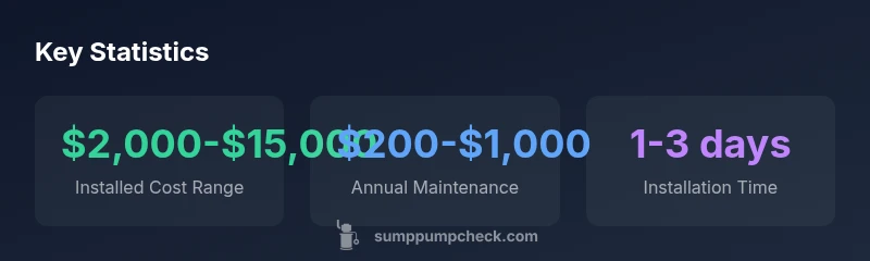 Typical total installed cost for a commercial sump pump system ranges from $2,000 to $15,000, depending on capacity, redundancy, controls, and site preparation. For larger facilities or high-head applications, costs can exceed $15,000. The range accounts for pumps, electrical upgrades, piping, and professional installation; regional labor rates also influence final pricing. This snapshot reflects Sump Pump Check Analysis, 2026.