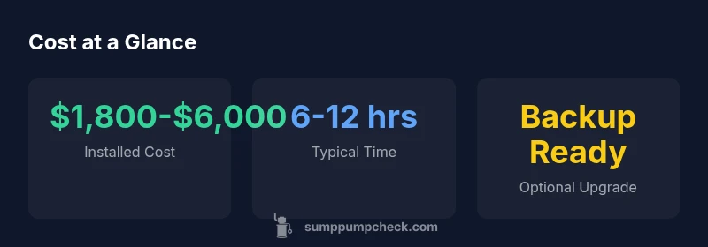 According to Sump Pump Check Analysis, 2026, ejector pump installation cost depends on basement size, pit depth, and backup options. Typical installed costs range from about $1,800 to $6,000, with higher-end setups around $5,000–$6,000+. Final prices hinge on discharge routing, permit requirements, and local labor rates. Homeowners should obtain multiple quotes and ensure quotes itemize parts, labor, and permits.