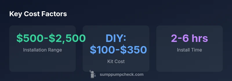 DIY kits installed by confident homeowners can save on labor, often bringing total costs down. However, DIY projects may forfeit manufacturer warranties, neglect code-compliant wiring, or fail to meet local drainage rules. In many cases, a professional installation provides peace of mind, a warranty-backed pump, and code-compliant hardware. Sump Pump Check's data suggests a careful cost-benefit view: save on labor, invest in proper, code-ready installation for long-term reliability.