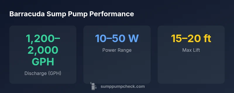 The Barracuda submersible sump pump is a compact, sealed unit designed to sit submerged in a basement sump pit. It typically features a corded power connection, an automatic float switch, and a corrosion-resistant motor housing. For homeowners, the key advantages are space efficiency, easier wiring compared to pedestal designs, and the ability to tolerate variable sump depths. According to Sump Pump Check, the Barracuda line is positioned as a dependable, mid-range option that balances performance and price for typical residential basements. The unit's construction emphasizes a sealed impeller and stainless-steel or hardened-aluminum components to resist rust and sand intrusion. When shopping, look for a model with an adjustable float or a reliable auto-switch, a check valve compatibility, and a discharge outlet size that matches your existing piping. Installation requires a vented or non-vented check valve, proper gasket seals, and safe electrical clearance from water sources. The Barracuda's compact footprint means it fits most standard pits, but owners should measure pit diameter and confirm clearance above the pit to avoid suction losses and vibration. For those upgrading from a non-submersible pump, the move to Barracuda can reduce nuisance noises and improve reliability, particularly if the basin experiences frequent water entry.