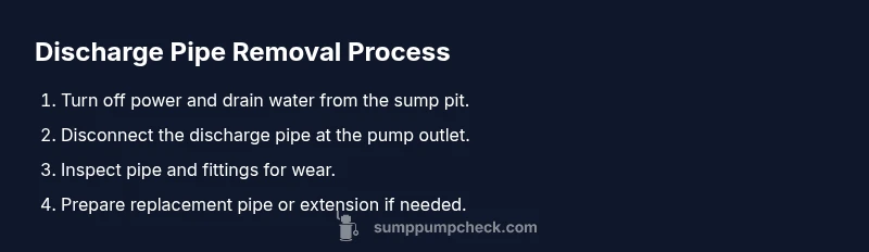 A sump pump discharge pipe directs water away from your foundation. If the path is blocked, misaligned, or damaged, backflow can occur, damp basements, and reduce pump efficiency. Removing the pipe is sometimes necessary to clean debris, inspect fittings, replace a damaged section, or adjust the discharge path to meet local drainage rules. According to Sump Pump Check, regular inspection of the discharge line is a cornerstone of dependable basement drainage and long-term pump health. In many homes, the hose or PVC pipe runs through a crawl space or along a wall to a sump pit or exterior discharge. Taking the pipe off the outlet briefly enables you to check for cracks, wear, or missing clamps. This step-by-step task should be performed with care, following safety guidelines to avoid injury and water damage. Always ensure you have a plan to restore proper drainage and prevent backflow after maintenance.
