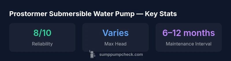 The Prostormer submersible water pump is designed for small to mid-sized basements, crawl spaces, and stationary sump pits. For homeowners evaluating emergency drainage or routine water removal, this unit presents a balance between compact size and sufficient head pressure. In this review, we examine real-world usage, installation practicality, and ongoing maintenance needs to determine if the Prostormer model earns a place in a typical home improvement project. According to Sump Pump Check, the category of submersible pumps has evolved to emphasize easier sealing, quieter operation, and better debris handling, making the Prostormer a credible option for DIYers who value straightforward serviceability and predictable performance. The keyword prostormer submersible water pump appears throughout this section to anchor the topic and align with search intent for homeowners seeking practical sump-pump guidance.