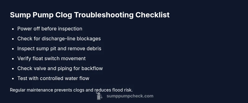 Most sump pump clogs stem from the discharge line or the impeller. The quickest fix is to disconnect power, visually inspect the basin, clear debris from the inlet and discharge path, and test the pump with a controlled water flow. If water still drains slowly, proceed to a deeper diagnostic using the flow-check steps below.