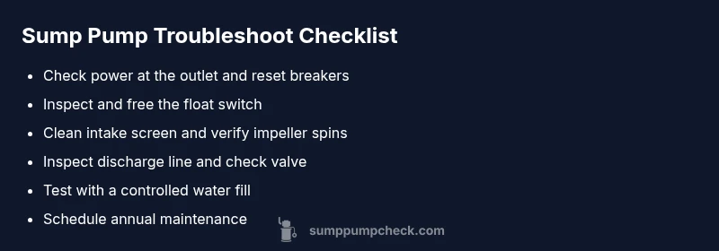 Common reasons include a tripped circuit, a stuck float, or a clogged intake. Start with power checks, then inspect the float and screen before testing the pump again.