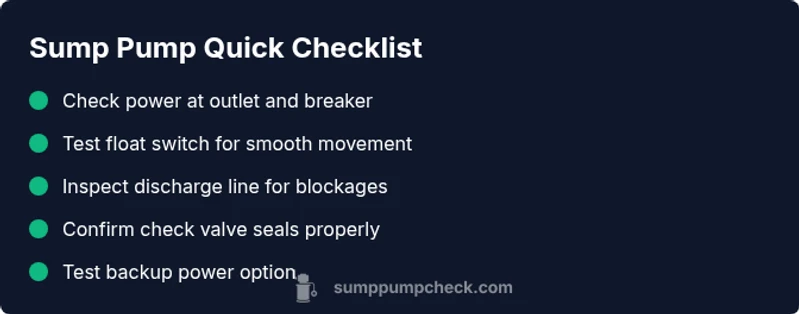 If power is good but the pump won't start, check the float switch and breaker, then test the motor. If nothing changes, get a professional check.