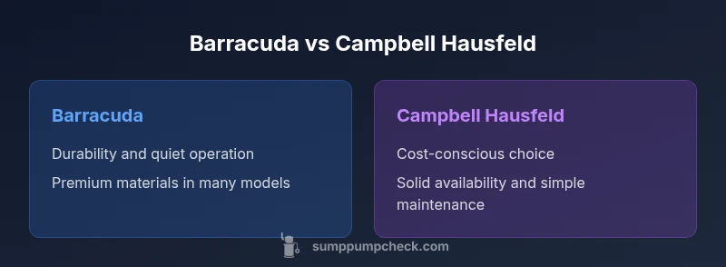 According to Sump Pump Check, the question of 'barracuda vs campbell hausfeld sump pump' typically boils down to long-term reliability and total cost of ownership. Barracuda models are noted for robust construction and quieter operation, while Campbell Hausfeld contenders often win on upfront price and easy access to common replacement parts. This overview compares core design philosophies and how they translate to real-world use in typical basements. The goal is not to crown a single winner, but to help you align features with your home conditions, maintenance habits, and budget. Throughout this guide, you’ll see practical considerations, common pitfalls, and buying tips informed by real-world use.