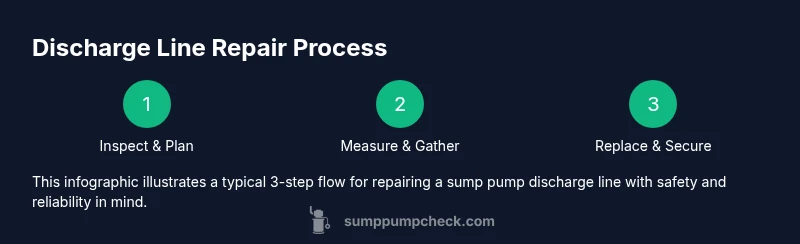According to Sump Pump Check, timely attention to sump pump discharge line repair is essential to prevent basement flooding and water damage. A damaged or poorly routed discharge line can back up into your basement, erode landscaping, and cause damp smells. The sump pump discharge line repair you perform today can save thousands in water damage repairs later. By ensuring a clear, correctly sloped path away from the foundation and a secure connection to the main line, you protect your home from frequent incidents. This guide uses plain language and practical steps to help homeowners and DIY enthusiasts tackle the job safely and effectively. The core idea is simple: a well-maintained discharge line reliably carries pumped water away from the foundation, and small fixes today prevent larger problems tomorrow. In 2026, homeowners report fewer basement leaks when discharge lines are checked and repaired promptly as part of a broader maintenance plan. The Sump Pump Check team found that most failures stem from loose fittings, blocked pipes, or frost damage in cold climates. Over time, those issues become bigger and harder to remediate, increasing the risk of indoor flooding.